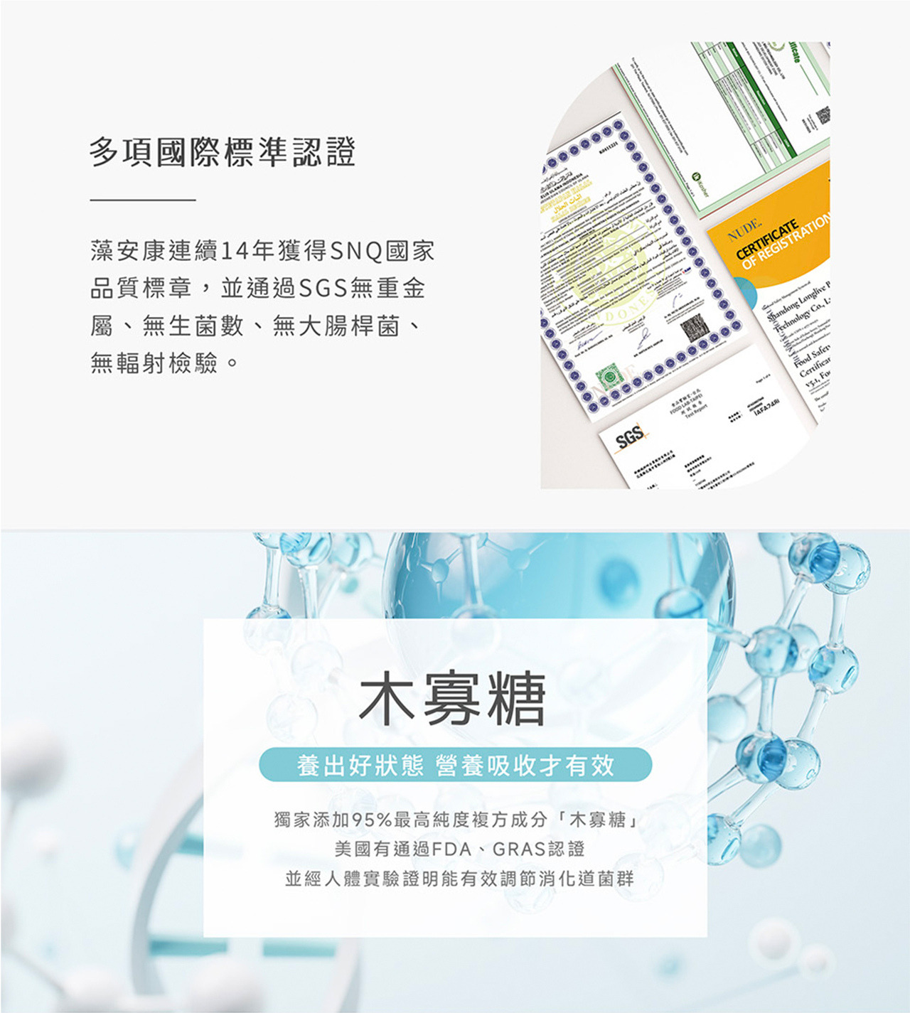 注意事項:褐藻糖膠與木寡糖均無與其他食品或藥品之配合禁忌, 也沒有食用時間限制