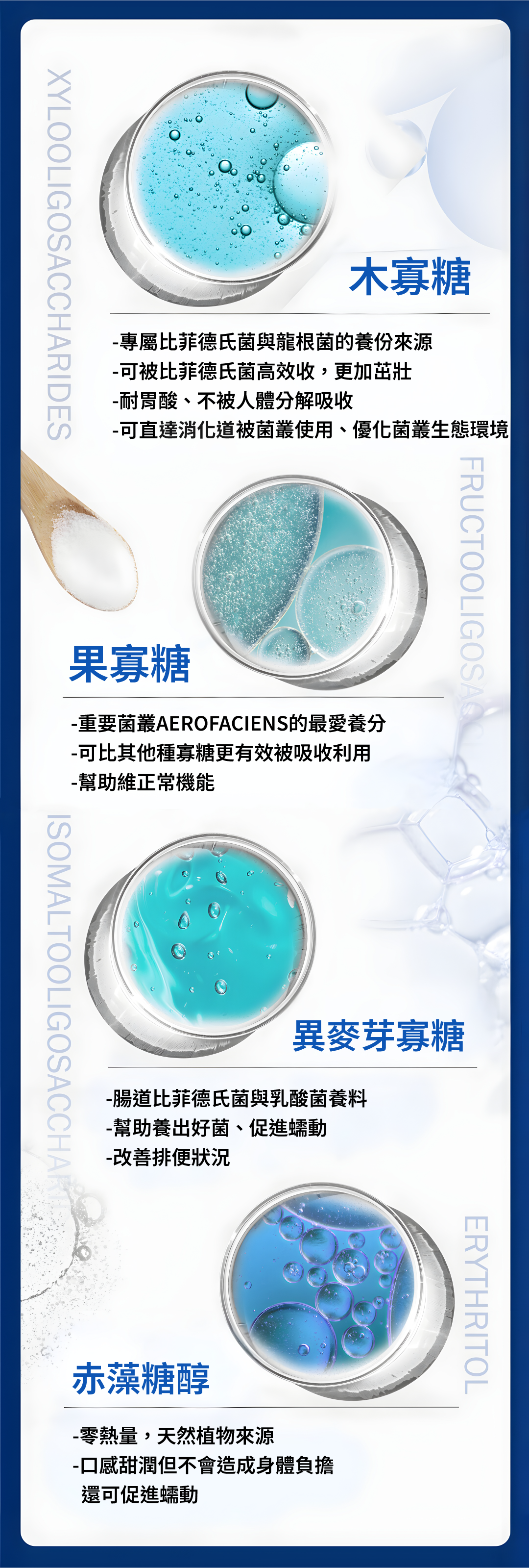 異麥芽寡糖、果寡糖、赤藻糖醇(甜味劑)、木寡糖95P |